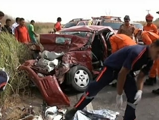 O acidente na BR-135, no quilômetro 29, deixou o trânsito quase parado no Campo de Perizes depois das 8h. O condutor de uma caçamba da prefeitura de Santa Rita, que dirigia em alta velocidade, não conseguiu frear. A caçamba foi parar na pista contrária e bateu de frente em um automóvel que saia da capital e transportava três pessoas. “Havia uma fila de veículos parados na faixa da esquerda, a caçamba vinha atrás e não conseguiu parar e jogou a direção para a contra-mão”, conta o inspetor Machado da Polícia Rodoviária Federal.